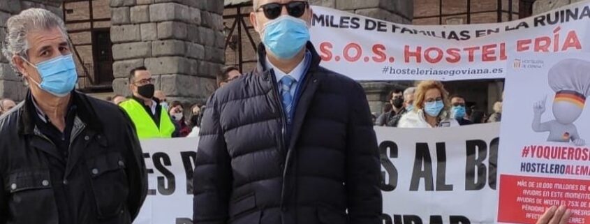 ACS ha estado apoyando a AIHS-Hotuse en el acto de concentración que la hostelería segoviana ha llevado a cabo con motivo del cierre de sus establecimientos.