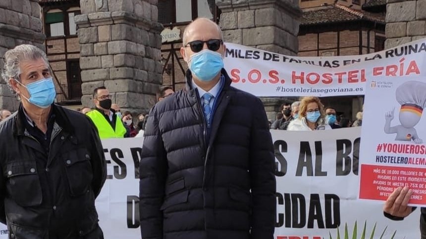 ACS ha estado apoyando a AIHS-Hotuse en el acto de concentración que la hostelería segoviana ha llevado a cabo con motivo del cierre de sus establecimientos.